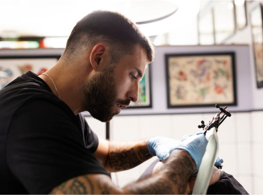 Soy un tatuador apasionado por el arte y los detalles. Con años de experiencia, me especializo en crear tatuajes que reflejan tu esencia y estilo. Creo que cada tatuaje debe ser único, igual que tú. Mi compromiso es ofrecerte una experiencia personalizada y profesional.